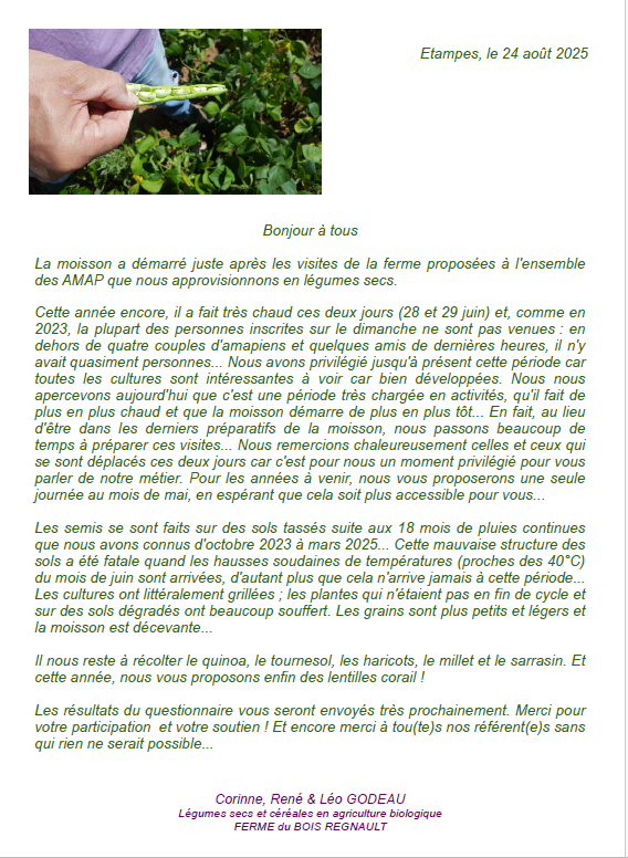 Nouvelles de la moisson 2025 - Ferme du Bois Regnault